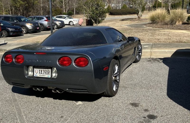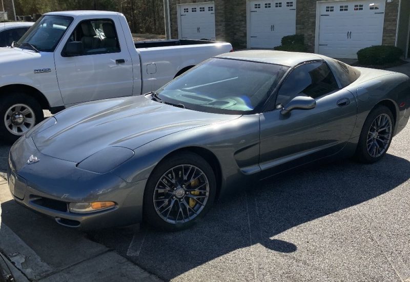 Gray 2003 Corvette for sale has new tires. Runs great and has been kept in the garage. Front window is cracked but otherwise is in great shape.